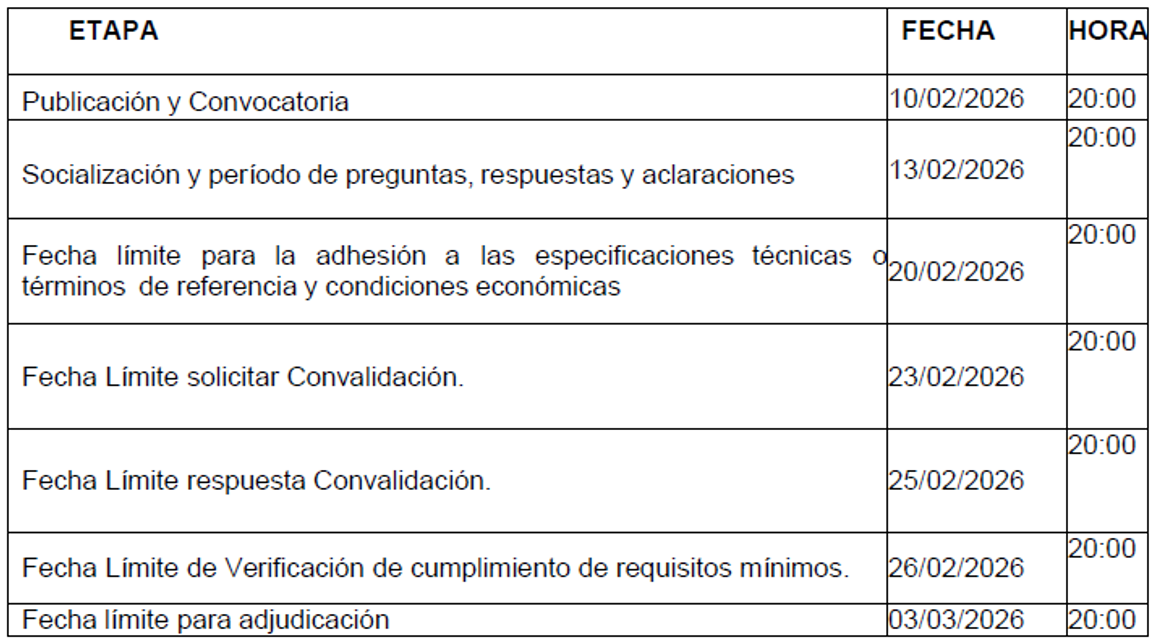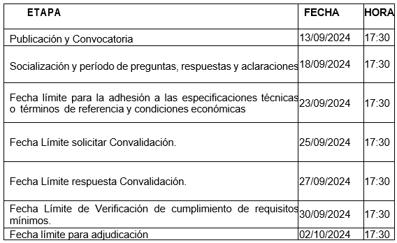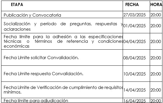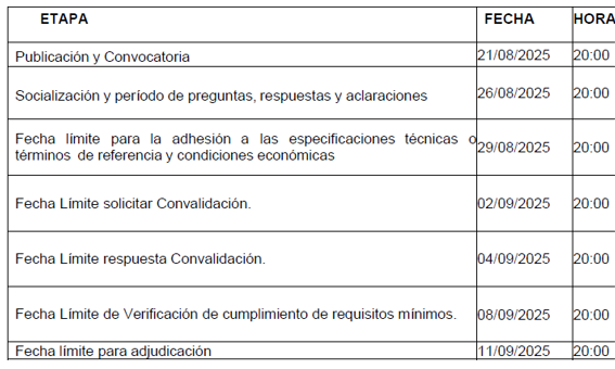 Cronograma del proceso